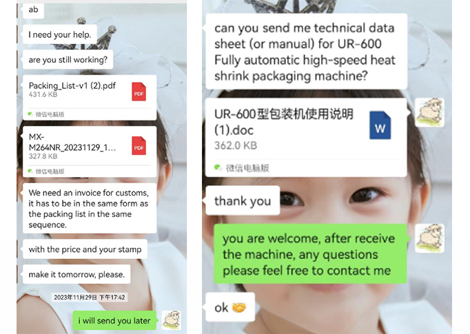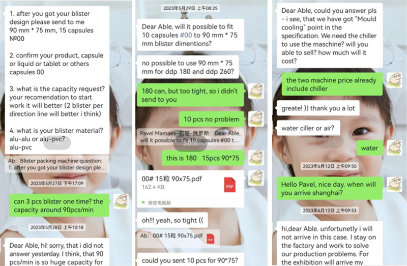 Клиент по имени Павел из России.Он отправил подробную информацию о требуемом оборудовании, мы по его требованиям подобрали подходящие модели, предоставили чертежи и разобрали все поставленные им вопросы.